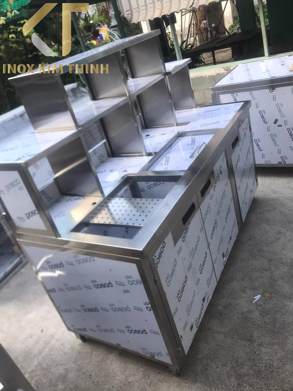 Inox Kim Thịnh là đơn vị uy tín, là sự lựa chọn tối ưu nhất khi có nhu cầu về thiết bị inox công nghiệp khác nhau như quầy pha chế inox, thùng đá inox, tủ hấp cơm công nghiệp, tủ hấp cơm inox, chậu rửa công nghiệp, tủ hâm nóng thức ăn, xe đẩy công nghiệp… bởi đội ngủ nhân viên luôn đáp ứng nhanh, tốt nhất các yêu cầu quí khách đề ra, chất lượng thiết bị hàng đầu, hoạt động ổn định trong thời gian dài, giá thành cung cấp rẻ nhất.