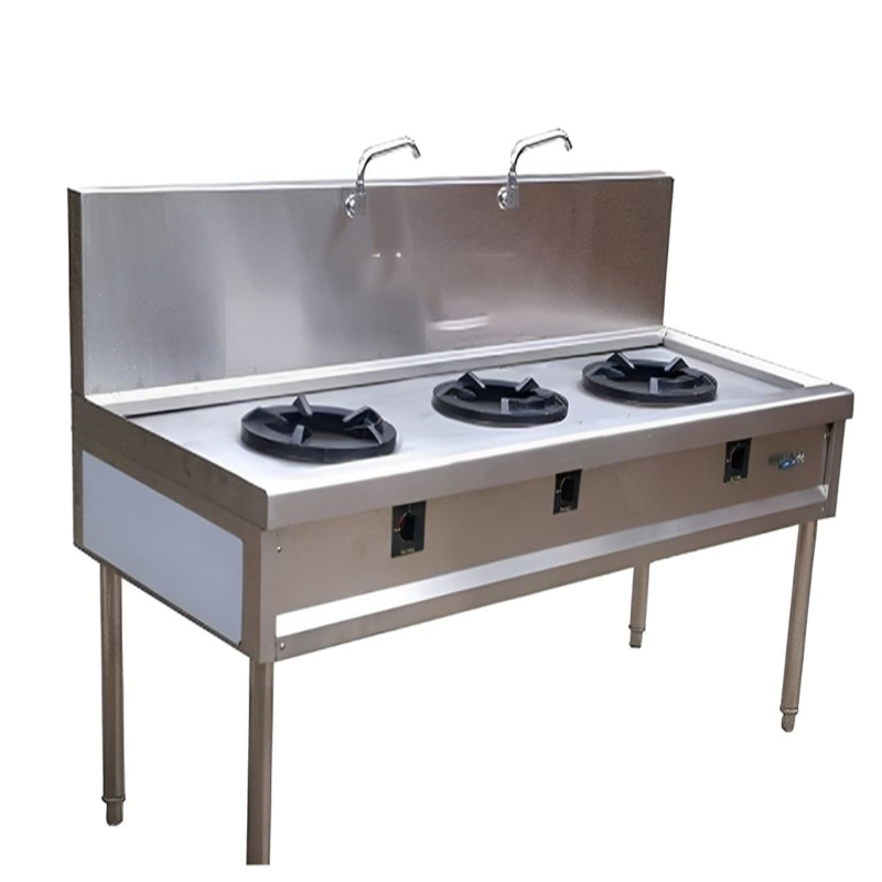 - Chi tiết kỹ thuật: Nên chọn bếp 3 họng có công suất lớn và hệ thống quạt thổi (nếu là bếp Á) để đảm bảo tốc độ đáp ứng các món xào nhanh.
