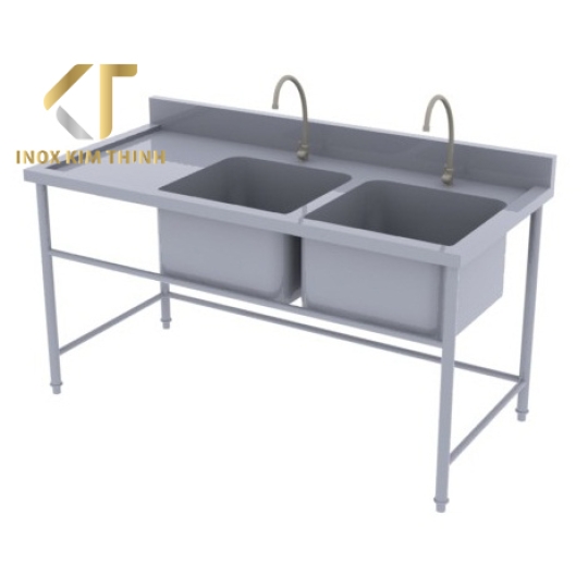 Chậu rửa 2 hộc cánh trái được Inox Kim Thịnh thiết kế tương tự như chậu rửa đôi nhưng có thêm kệ phẳng bên trái. Để người sử dụng khi sơ chế thực phẩm, rửa thiết bị có thể đựng đổ trên kệ phẳng. Hạn chế việc di chuyển, đặc biệt là trong hệ thống thiết bị bếp công nghiệp.